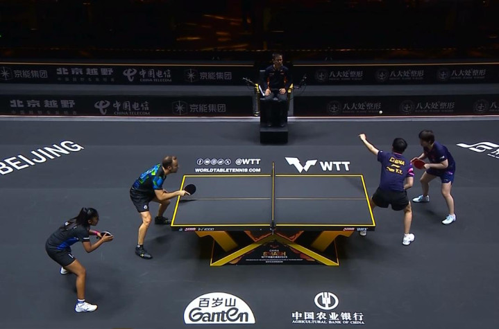 第3局国乒组合终于有所起色,这局早早建立起优势,比较顺利扳回1局。第4局国乒组合保持良好节奏,再度顺利拿下扳平总比分。决胜局国乒组合连丢3分,又连得5分反超,双方相持到9平,国乒组合把握机会惊险拿下。